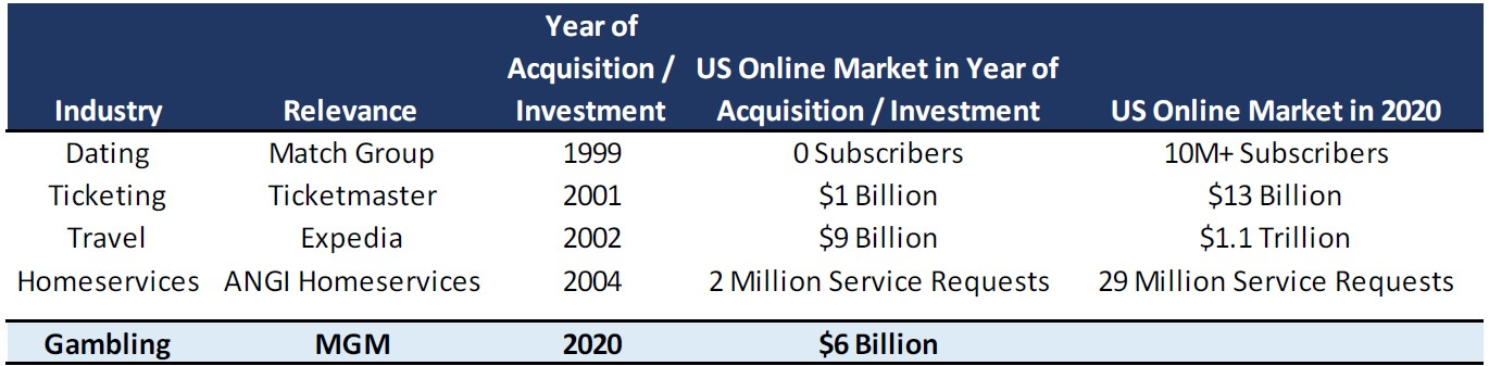 In the same opportunistic manner, IAC took a $1 billion stake in casino operator MGM in August 2020. In the Q2 shareholder letter and during the earnings call IAC CEO Joey Levin explained: