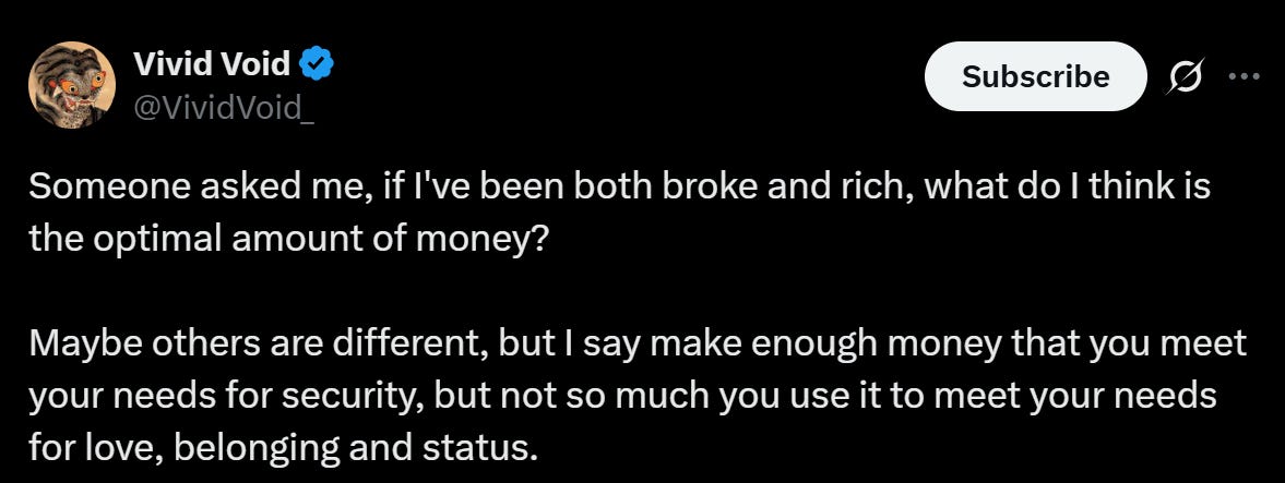 on how much is enough and vivid void's quote, Bill Gates put it in a diff but similar way: