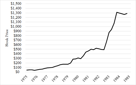 Its performance was astounding as “book value per share increased from $90.02 at year-end 1974 to $1,108.77 at year end 1984—a compounded annual rate of return of 28.5%.”