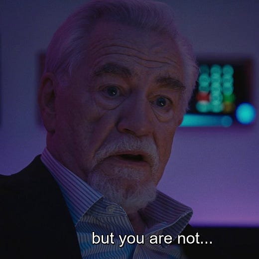 I would underline the word ‘seriously’ if it was possible in Substack. It makes a huge difference whether we get serious about the work, whether we become professionals, or whether we remain amateurs. This was the highlight of a recent episode of one of my favorite shows, Succession. Every one of its characters is hilariously flawed which I find very relatable. But what keeps me engaged is the theme of the hunger for money and power and the sacrifice that is demanded in their pursuit. Ambition and its price tag, a favorite interest of mine.