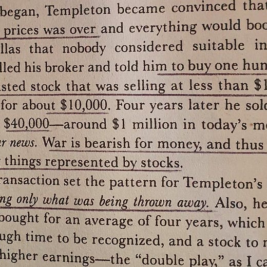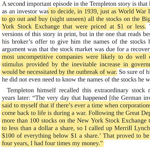War and political upheaval also occasionally lead to unique trades. I collected a few examples in this thread, from Templeton to Baruch, Keynes, and Rothschild. If you know of other examples, would love a comment or email/DM.