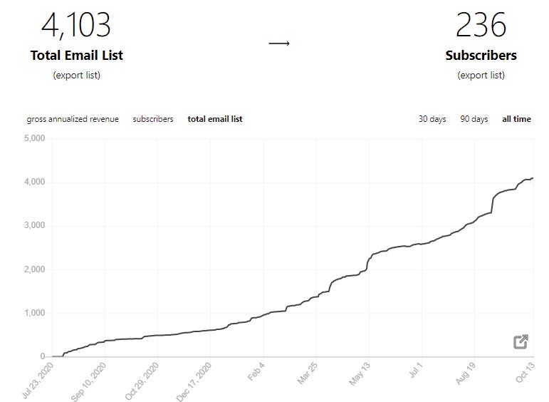 Premium vs. free content is another tension I wonder about. Once the most interesting content disappears behind a paywall, overall growth slows down. Another option is to keep deep dives free and offer premium subscribers access to more personal writing. However, the latter provides less incentive to sign up and might be more appropriate for a lower price point. It’s a catch-22 for a smaller newsletter.